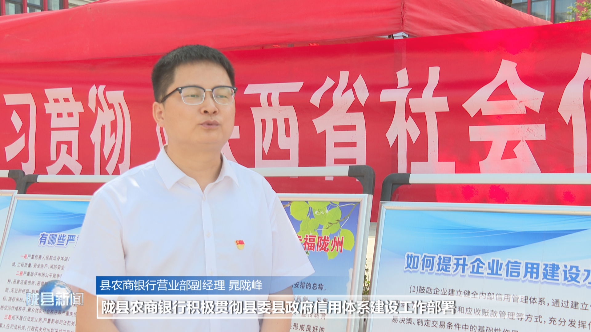 县农商银行营业部副经理晁陇峰:“陇县农商银行积极贯彻县委、县政府信用体系建设工作部署,持续推进农村信用服务、政策宣传服务一体化,扎实开展‘千企万户大走访’活动,大力推广‘信易贷’业务,为县域经济发展贡献农信力量。”