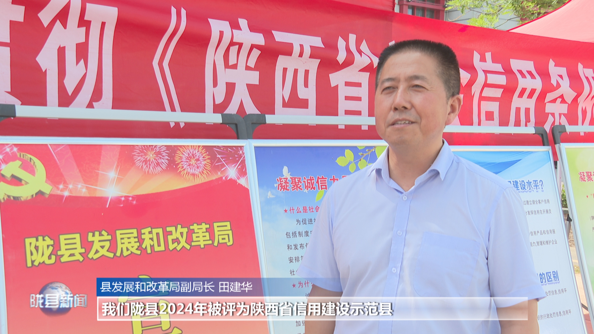 县发展和改革局副局长田建华:“我们陇县2024年被评为陕西省信用建设示范县,连续三年被市信用办评为优秀单位,两篇典型案例被信用中国刊登宣传,今天我们在这里举行第18个6·14信用记录关爱日集中宣传活动,目的营造知信、守信、用信的社会氛围,不断优化营商环境,助力县域经济高质量发展。”